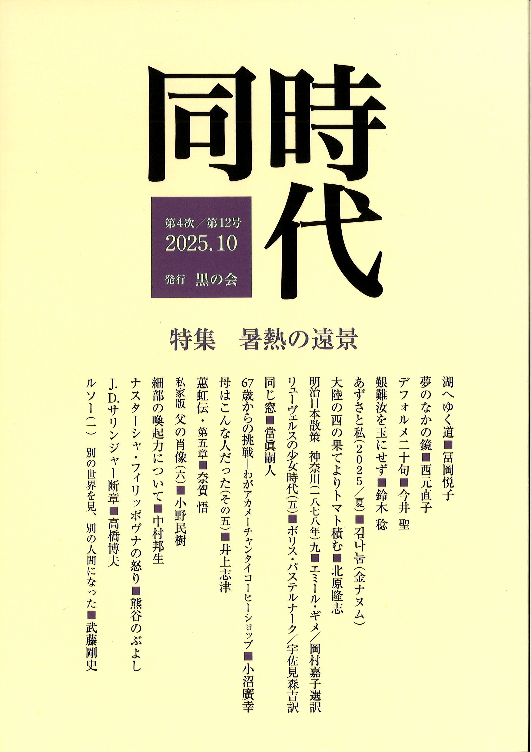 『同時代』(黒の会発行)の第4次創刊号が今年の2月に、第2号が9月に刊行されました。